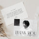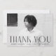 Célébrez la réussite de votre diplômé grâce à ce carte de remerciements de graduation simple et moderne. Le design met en valeur la photo horizontale du diplômé sur le devant avec le Merci affiché en gras noir art déco. Personnalisez-vous avec le nom du diplômé, le nom de l’école et l’année de diplôme pour créer un souvenir significatif. Le dos comprend de l'espace pour votre message de remerciement personnalisé en lettres noires ou laissez-le vide pour une note manuscrite. Une façon intemporelle de montrer l'appréciation pour des cadeaux réfléchis et le soutien.