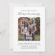 Une invitation simple et moderne à la maison en noir et blanc présente un design minimaliste avec un élégant script de lettrage manuel et une photo personnalisée. Célébrez de déménager dans votre nouvelle maison avec vos amis et ceux qui vous sont chers, ou construisez de nouvelles amitiés de voisinage. Avec une famille là pour partager de bons moments, il ne faudra pas longtemps pour que votre nouvelle maison se sente comme à la maison !