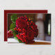 Dieses Ausrüstungsbeschreibungen ein Foto eines Rosen- und Beerenblumenstraußes mit seinen Stämmen wickelten im roten Band ein. Die Blumenstrauß-Erholungen auf einer Tabelle und Ihnen können ein weiches Bild einer Braut im Hintergrund sehen. Diese Karte ist für das Fragen Ihres Freunds, um eine Brautjungfer, ein Blumenmädchen oder eine Trauzeugin zu sein perfekt. Personifizieren Sie diese schöne Karte mit Ihrer eigenen Mitteilung.
