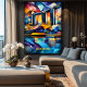 Erleben Sie Singapurs beeindruckende Modernität mit diesem lebendigen kubistischen Kunstwerk. Diese Abbildung zeigt die ikonischen Marina Bay Sands und die dynamischen Lichter der Stadt, die sich in fett geometrischen Mustern widerspiegeln. Sie verbindet zeitgenössische Ästhetik mit urbaner Eleganz. Ideal für die Liebhaber von gehobener Dekoration, asiatischen Sehenswürdigkeiten und lebendigen Stadtplätzen, bringt dieses Stück eine stilvolle, futuristische Touch in jeden Raum.