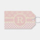Ihr Single in Monogramm zeigt den weißen Polka-Punkt auf rosa und gelb auf rosa Split Design Geschenketiketten an.