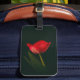 Lebhafte, rote Tulpe stehend vor einem schwarzen Hintergrund.