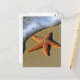 Eine beeindruckende Strandfotografie, ein hellorangefarbener Seestern am Ufer, der von einer sanften Welle bedeckt werden soll.