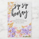 Ein elegantes, modernes, stilvolles, romantisches Brautparty-individuelles Weinetikett mit Schmetterlingsmotiv mit Hydrangea-Blume und handgemalten Wasserfarbenschmetterlingen in Gold und einem Goldsprinkle (das ist ein digitaler Effekt, nicht echte Folie), sowie dem Titel "Sip Sip Hooray". Romantisch und elegant, stilvoll und schicken, wird es an die moderne Braut (und Bräutigam), die eine raffinierte, aber entspannte Atmosphäre will, vielleicht in der Landschaft, in einem Garten oder an einem anderen Ort, wo die Natur eine wichtige Rolle spielt.
