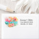 Die tropischen Rücksendeadressen-Aufkleber sind mit einem Sonnenuntergang in Aquarelltönen, Cocktails, Hibiskus-Blume und Palmen-Blätter ausgestattet.