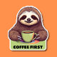Sipping Sloth Coffee First Waterproof Aufkleber