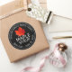 Feuille d'érable à sucre rouge réaliste avec détails morphologiques sur arrière - plan noir. Texte du tableau de bord blanc. Ligne blanche le long de la frontière du étiquette. Ce étiquette promotionnel est parfait pour rappeler aux clients que le sirop d'érable est un produit naturel qui est "100% pur - Fabriqué par des arbres".