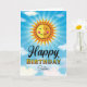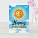 Lassen Sie Ihre Schwester sich zum Geburtstag ganz besonders fühlen, indem Sie ihr diese fröhliche, zauberhafte, orange und gelbe Sonne schicken, die im blauen Himmel mit Wolken schwebt. Im Text steht: "Die Sonne scheint an dem Tag, an dem du geboren warst, nur etwas heller."