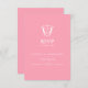 Cette carte RSVP personnalisée présente un design simple et minimaliste avec un monogramme intemporel et une crête sur un arrière - plan rose doux. Parfait pour les couples à la recherche d'élégantes cartes RSVP, ce design allie sophistication et charme classique, ce qui en fait un choix idéal pour les mariages de jardin de printemps et les célébrations formelles. Conçu dans le cadre de mon mariage carte RSVP, ce modèle vous permet de personnaliser vos détails sans effort. Que vous soyez à la recherche de cartes RSVP imprimables ou d'options d'impression professionnelle, ce modèle de cartes RSVP est à la fois élégant et pratique. Découvrez d'autres monographies et papeteries sur le thème de la crête pour compléter votre suite à l'adresse www.zazzle.com/dotellabelle. Art et design de Victoria Grigaliunas.