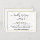 Ce mariage en or moderne simple mais élégant ou site de réception RSVP boîtier avec bordures d'or et élégant script lettré à la main peut être utilisé conjointement avec une carte d'invitation à la réception ou une carte de faire-part/réception mariage (vendue séparément) et fournit des informations pour que vos invités puissent répondre via votre site mariage, par e-mail ou texte, ou via une carte de réponse. Facile à customiser avec vos propres informations. Parfait pour la réception qui se tient dans un cadre simple, rustique, élégant, extérieur, grange, jardin, ferme, ou tout lieu mariage moderne ou tendance. Conception de T.K. Goforth.