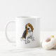Niedlicher illustrierter Beagle, der mit seinem Kopf gespannt zur Seite sitzt