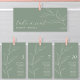 Platzieren Sie die Kopfkarte mit den Kopfkarten der grünen Sitzkarte aus dem Blätterseil am Rande des Tischplatzes. Alle Texte sind so vorbereitet, dass Sie sie einfach und schnell mit Ihren eigenen Details personalisieren können.