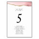 elegantes Erröten und goldenes Aquarell. Tischnummer Kartensitzkarte mit moderner Kalligraphie.