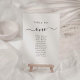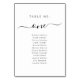 Organisieren Sie Ihren Empfang mit diesen Sitzplan Karten für die Hochzeit. Das Design ist einfach und elegant, sodass es leicht ist, es an jedes Hochzeitsthema anzupassen. Fügen Sie Gastnamen und Tischnummern hinzu, drucken Sie sie aus und zeigen Sie sie im Sitzbereich an. Eine saubere und moderne Möglichkeit, Gäste zu ihren Plätzen zu führen und Ihre Veranstaltung reibungslos zu gestalten.