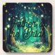 Eine schöne Hochzeits-, Verlobungs- oder Jubiläumsfeier am Abend mit einem Waldweg, der mit Lichterketten in den Bäumen geschmückt ist und eine atemberaubende Kulisse schafft. Ein leichter Nebel hängt im Hintergrund des Waldes, mit unzähligen Bäumen und Lichtern, die elegant von ihren Ästen hängen.