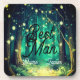 Eine schöne Hochzeitsfeier am Abend, ein Verlobungs- oder Jahrestag mit einem Waldweg, der mit Lichterketten in den Bäumen geschmückt ist und eine atemberaubende Kulisse schafft. Ein leichter Nebel hängt im Hintergrund des Waldes, mit unzähligen Bäumen und Lichtern, die elegant von ihren Ästen hängen.