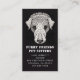 Feine schwarz-weiße Haustiersitter Visitenkarte mit einem coolen Hundegesichtsausdruck im Holzschnitt. Ein einzigartiger, mutiger Grafikstil.