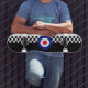 Retro skatebord mit Ska Quadratgraphik- und -jahr-Modziel.
