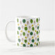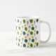 Diese Tasse hat ein skandinavisches, sich wiederholendes Design eines Waldes in Braun- und Grün- und Gelbtönen.