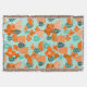 Diese Decke hat ein skandinavisches Design von Blume und Blätter in verschiedenen Farbtönen von orange und aquamarin.
