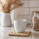 Mit diesem wunderschönen Untersetzer im skandinavischen Stil, der mit einem zarten, goldfarbenen und beigen Blätter gestaltet ist, können Sie die Herbstwärme in den Innenräumen genießen. Dieser Untersetzer ist perfekt geeignet, um eine saisonale Touch zu Ihrem Tisch hinzuzufügen und gleichzeitig Oberflächen zu schützen. Er verbindet ein rustikales Ambiente mit modernem Design. Dauerhaft und stilvoll, ist es ideal für jeden Zuhause.