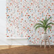 Volksmäßiges Blumenmuster mit skandinavischem Rosa und Meeresschaum-Blume auf weißem Hintergrund. Originelle Kunst von Nic Squirrell.