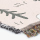 Whimsikskandinavisches Muster zeigt das landwirtschaftliche Leben zwischen Bergen, Seen und Bächen mit Tieren, Bäumen, Häusern, Fahrzeugen... sogar einem Heißluftballon und Windturbinen - alles auf einem pastellrosa Hintergrund.
