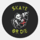 Skate oder die Grim Sensenmann Skeletton Skateboar Runder Aufkleber