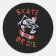 Skate oder die Skeleton-Skateboarder Runder Aufkleber