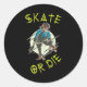 Skate oder die Skeleton-Skateboarder Runder Aufkleber