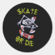 Skate oder die Skeleton-Skateboarder Runder Aufkleber