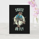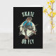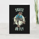 Cooles und gruseliges Halloween-Design mit einem Snowboarden Skelett und dem Zitat "Skate oder Fly". Ein perfektes Spiel für das kommende Halloween-Party.
