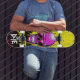 Tabla de skate con diseño punk-grunge y tipografía rasgada. Para los que patinan sin reglas.