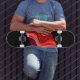 Skateboard in einem mehrfarbigen abstrakten Grafikdruck. Farben Schwarz und Rot Multi kaufen, wie ist oder anpassen Sie dieses Element nach Ihren Wünschen. Bild