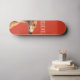 Dies ist ein minimalistisches Skateboard-Design mit einer braunen Windhund-Abbildung vor lebendigem rotem Hintergrund und einem anpassbaren Text "delicate".
