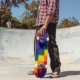 Célébrez votre Fierté, votre soutien ou votre amour de la couleur avec ce cool à damiers motif arc-en-ciel. Chaque rangée de carrés de couleur arc-en-ciel déplace un carré à droite pour créer un motif à damiers coloré. Les carrés de rouge, d'orange, de jaune, de vert, de bleu, d'indigo et de violet forment une séquence de bandes diagonales par pas. numériquement a créé une image de 9000 x 7000 pixels. Copyright ©2012 Claire E. Skinner, Tous droits réservés.