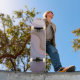 Skateboard Abstrait Blue Swirl. Patinage gris clair
