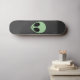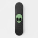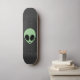 Tête alien verte simple avec grands yeux noirs et petite bouche noire sur un arrière - plan gris foncé.
