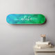 Aloha. Emmenez un peu des îles hawaïennes dans vos rues de la ville chaque fois que vous utilisez ce skateboard aux couleurs vives, chic, frappant, élégant, moderne, sportif, croustillant, écriture manuscrite blanche typographie d'un motif d'ananas, graphique en mauvais état dans un intense ombre turquoise, bleue et verte. Faites une déclaration amusante et élégante chaque fois que vous surf le trottoir. Faites un grand cadeau pour un ami, ou pour vous-même si vous ne pouvez pas supporter de le faire cadeau! Vous pouvez facilement personnaliser ce skateboard. S'il vous plaît, envoyez-moi un message avec toute question ou demande.