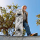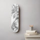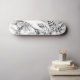La planche à roulettes noire et blanche avec atteindre la main et autre conçoit