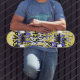Skateboard Ceci aussi passera les citations rétro en jaune