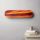 Ce design présente une image de nuages dans différentes nuances de jaune et d'orange contre un arrière - plan rouge. C'est une belle scène de coucher de soleil.