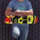 crâne jaune avec os rouge et noir
