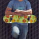 Farbenfroh, unterhaltsam und bewegungsbereit. Dieses Skateboard Deck ist eine perfekte Ergänzung zum Leben eines lustigen und sportlichen Menschen.