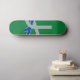 Skateboard avec un design avec le drapeau d'Albany, Oregon. Un drapeau vert, gris et bleu