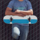 Skateboard avec drapeau de Bavière, design avec deux bandes horizontales bleu et blanc