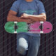 Planche à roulettes fraîche de poussin dans la conception d'éclaboussure de pastèque.