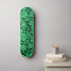 Un skateboard avec un design abstrait intéressant et diversifié, composé de formes circulaires de différents styles reliés par des lignes fines comme un réseau ou un écosystème.
