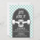 Skateboard Lasst uns es kick, Geburtstag einladen mit blauem Karo und Skateboard.