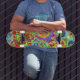 Skateboard Fleurs de soleil Abstraites | fleurs funky rétro